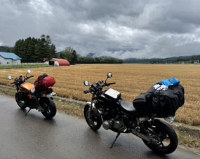 ●コニヤン号不調の為、千歳のレンタルバイク屋さんでBG350と交換